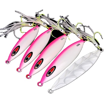 Jigs de metal luminoso para pesca en agua salada, bote de fundición de plomo personalizado de alta calidad, 45g, 60g, 80g, con gancho